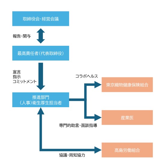 当社は、従業員およびその家族の健康保持・増進を経営的な視点から戦略的に支援し、活力ある組織づくりに向け邁進することをここに宣言します。
