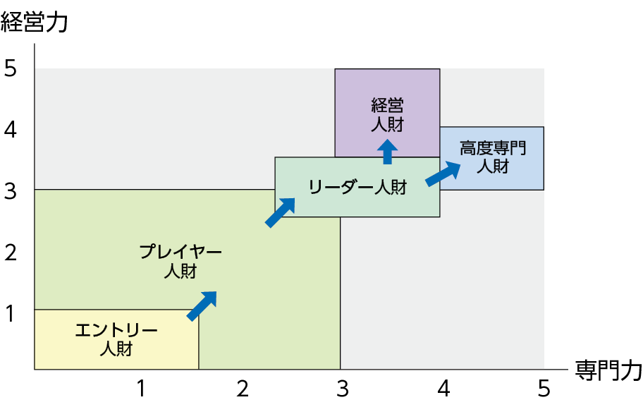 - 等級ごとの役割定義と、役割を果たすために必要な行動要件の明示